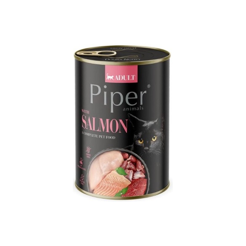 Συστατικά: κρέας και ζωικά παράγωγα 55%, ζωμός, ψάρια και παράγωγα ψαριών (φιλέτο σολομού 10%), μεταλλικά στοιχεία