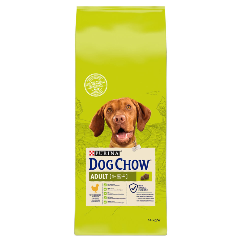 Η DOG CHOW ADULT DOG είναι μία 100% πλήρης και ισορροπημένη διατροφή για ενήλικους σκύλους για την υποστήριξη της συνεχιζόμενης ανάπτυξης και των αναγκών σε ενέργεια των παιχνιδιάρικων νεαρών μας φίλων.